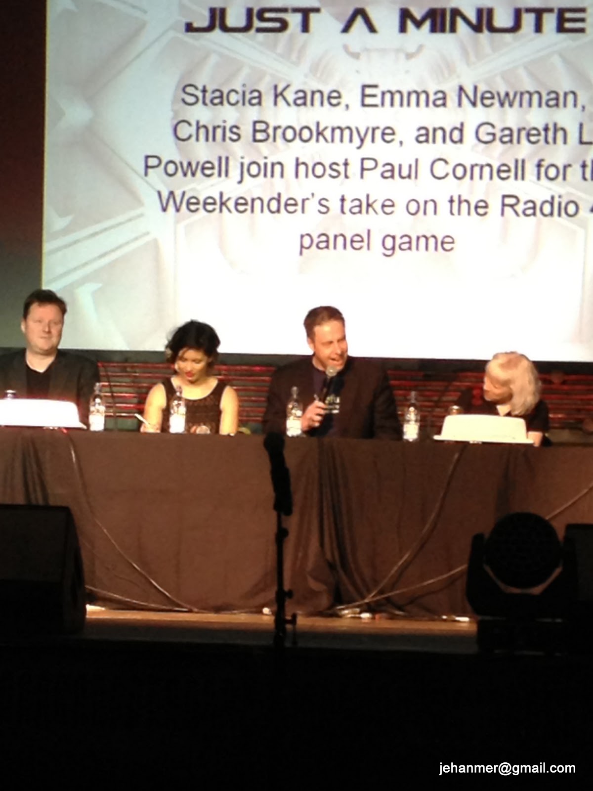 My other must see was Just a Minute ably compered by Paul Cornell (nicest man in the world - official) This had been a highlight for me last year and was not disappointed this time round as Emma Newman, Gareth Powell, Stacia Kane and Chris Brookmyre did battle. Watching Emma Newman's inner pedant wrestle with her anxiety was brilliant.